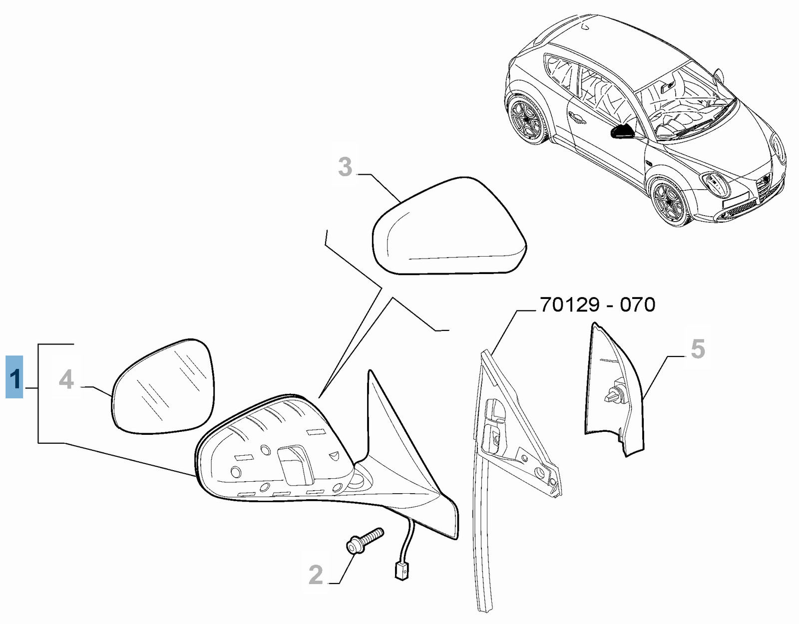 Specchietto retrovisore esterno destro per Alfa Romeo Mito