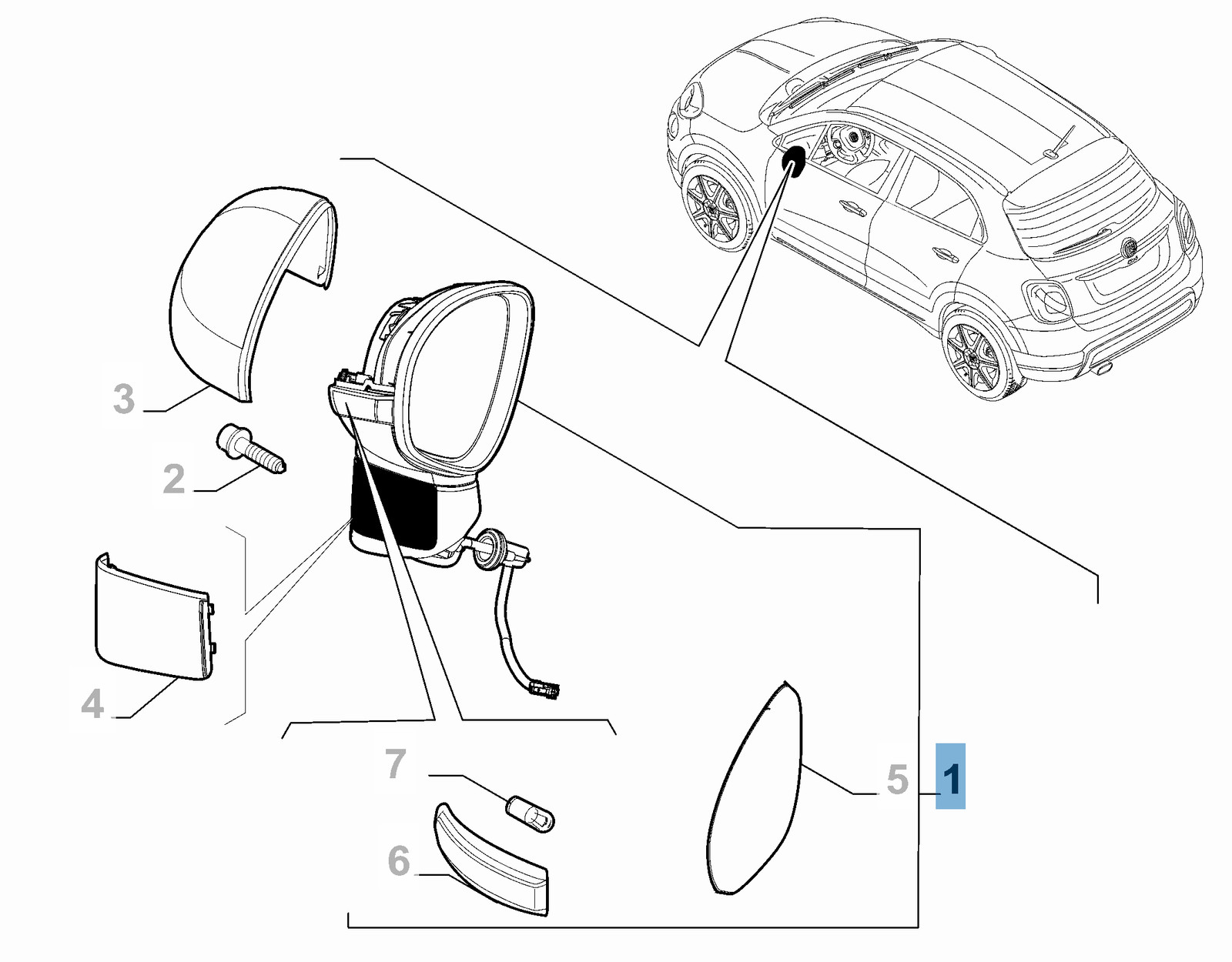Specchietto retrovisore esterno destro per Fiat 500X