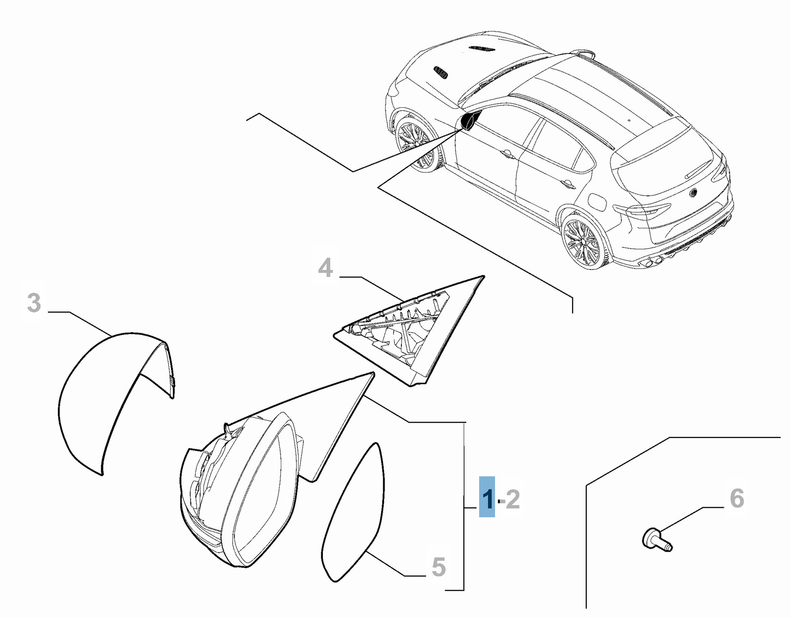 Specchietto retrovisore esterno destro per Alfa Romeo Stelvio