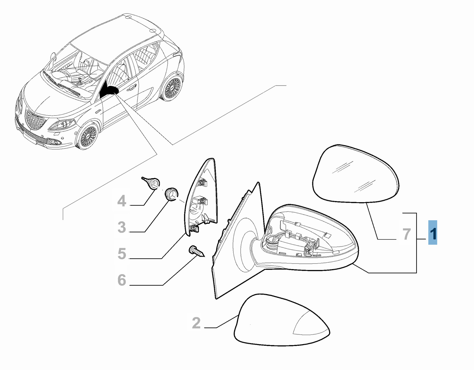 Specchietto retrovisore esterno destro per Chrysler Ypsilon