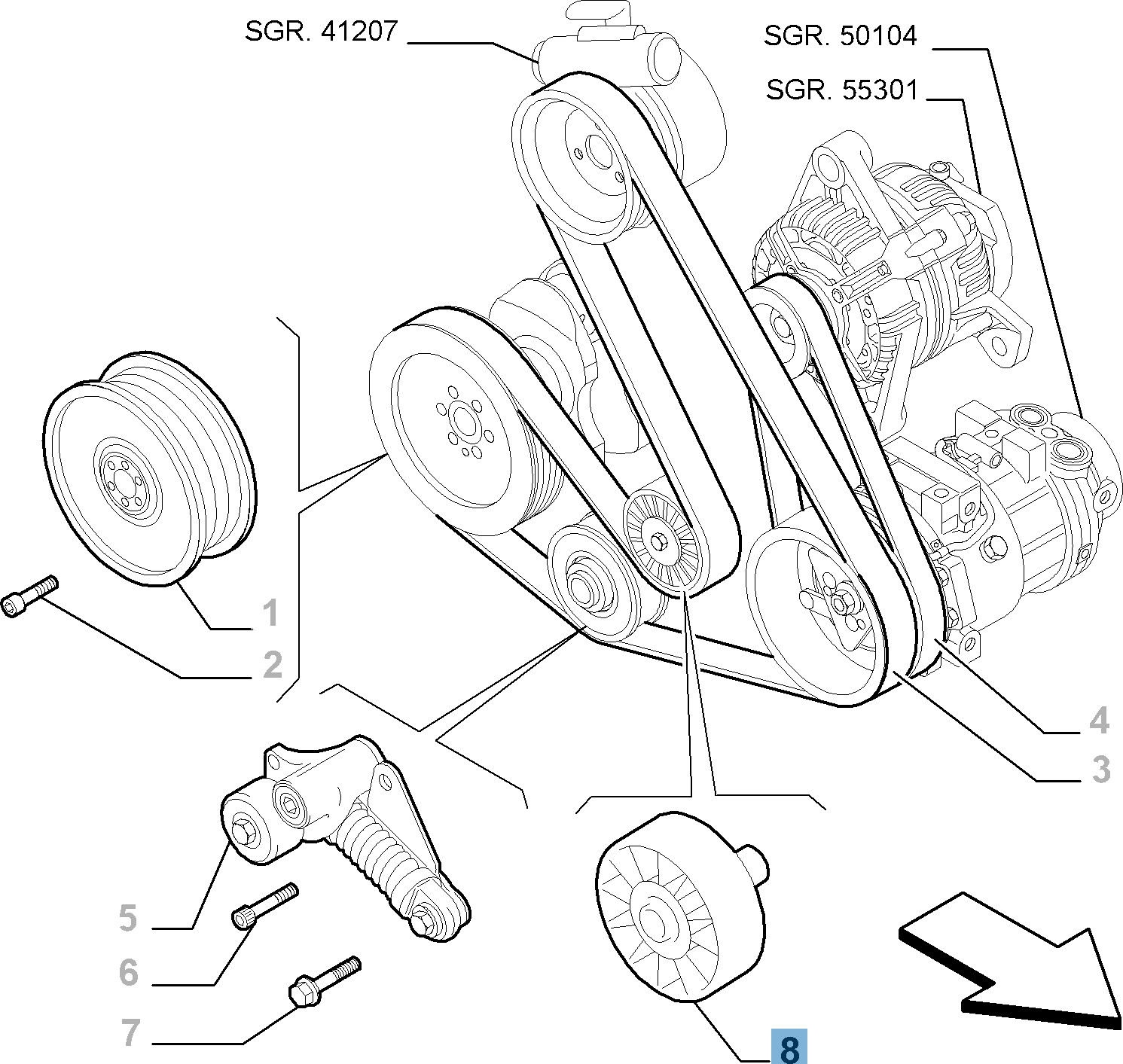 Tendicinghia fisso per Alfa Romeo 159