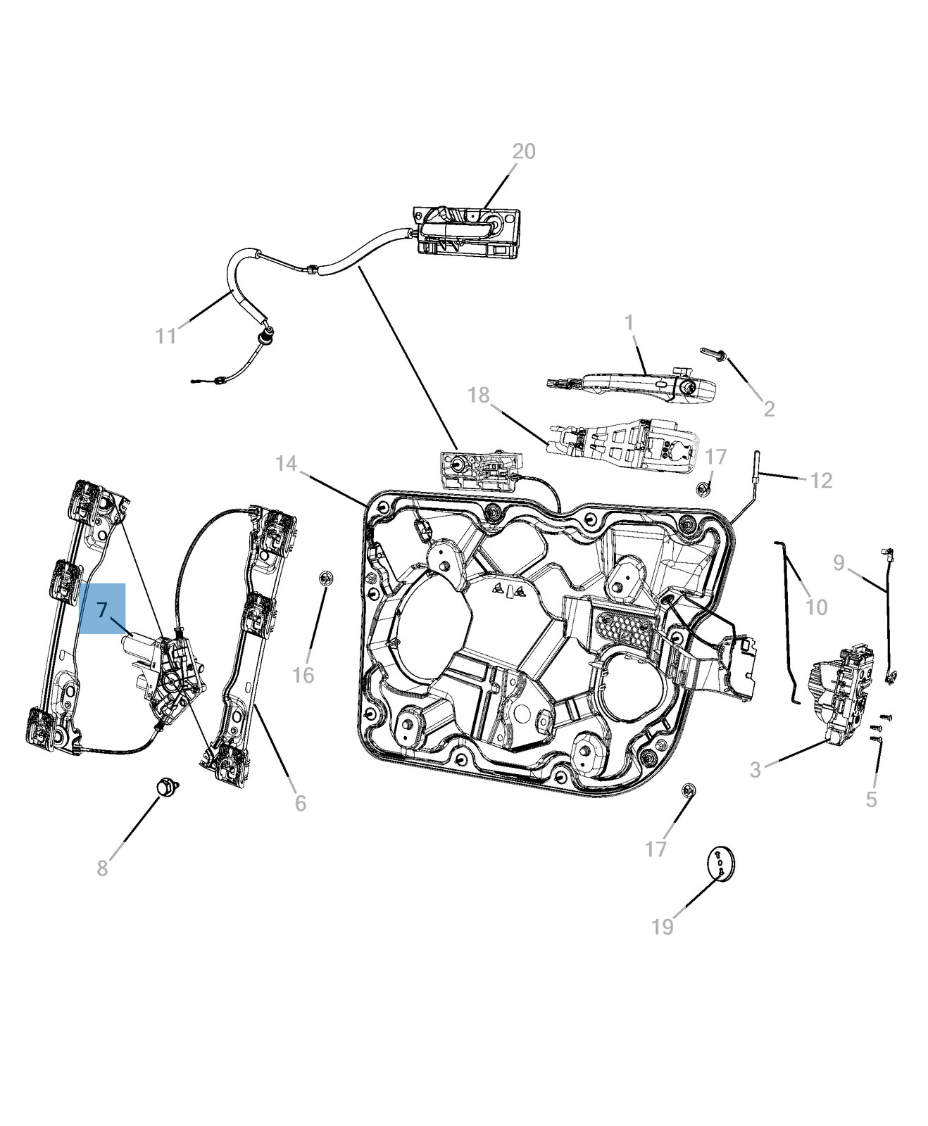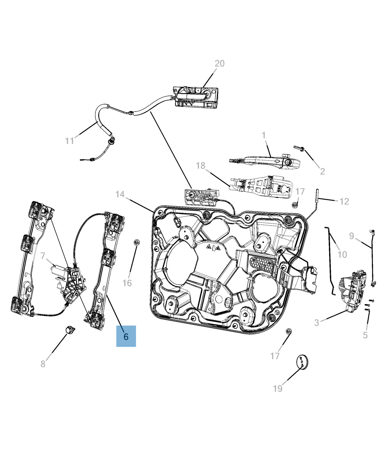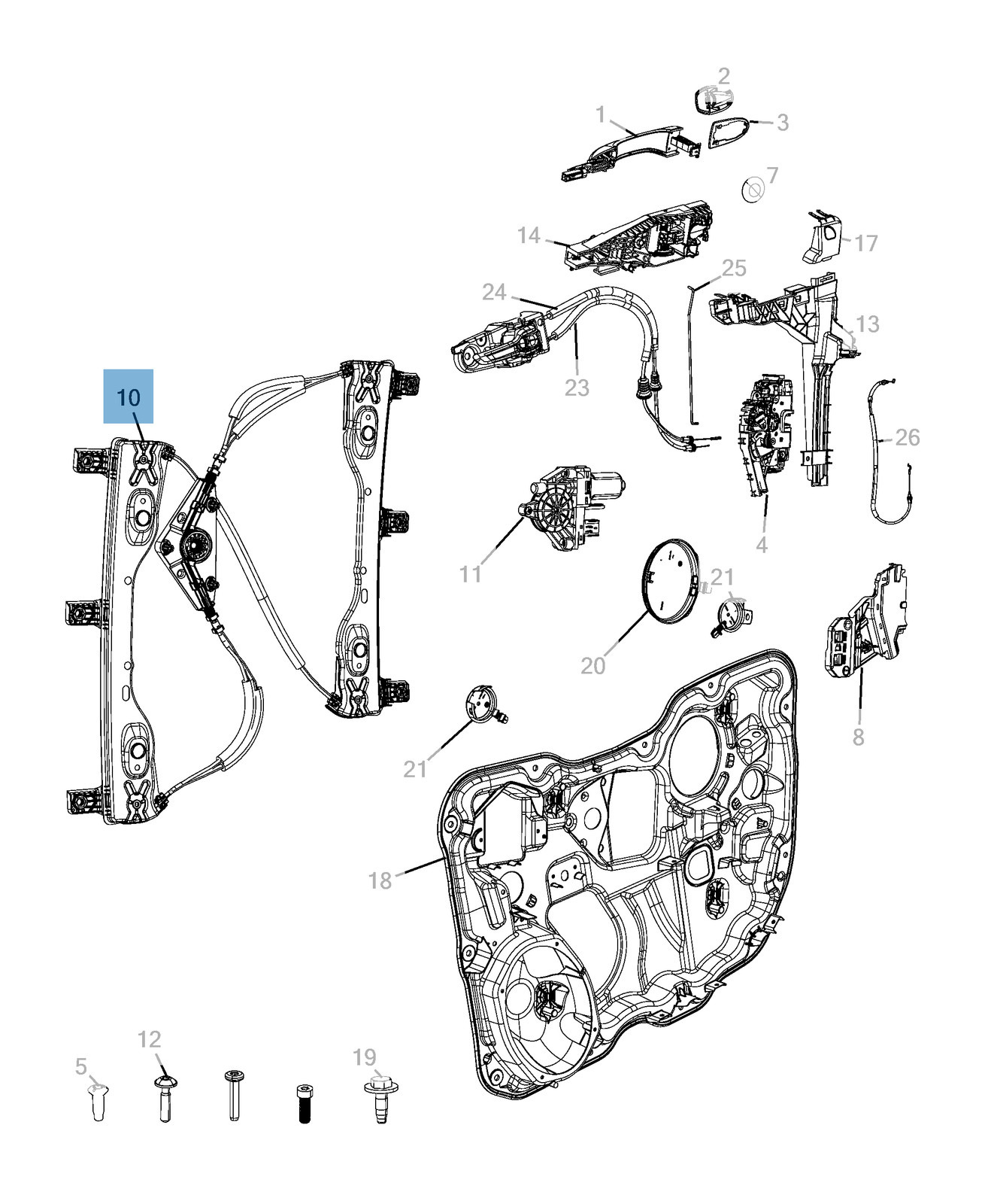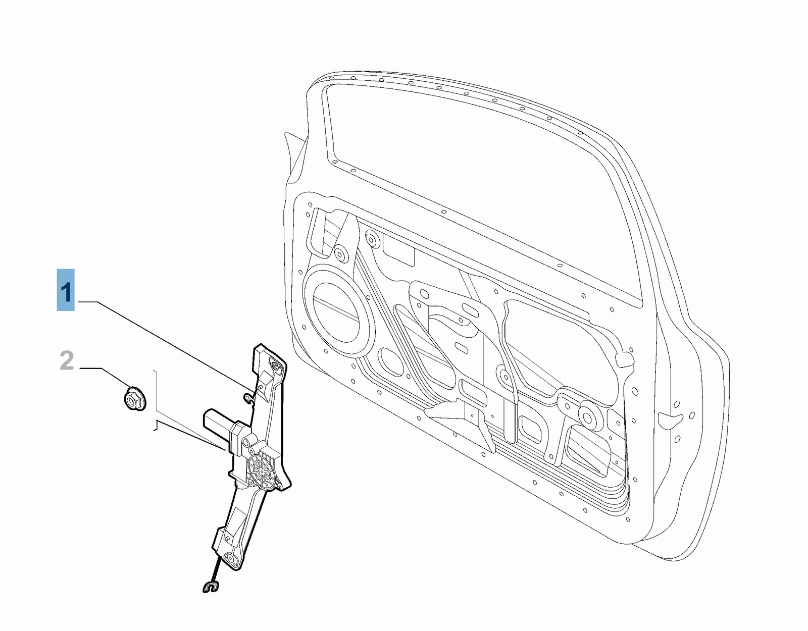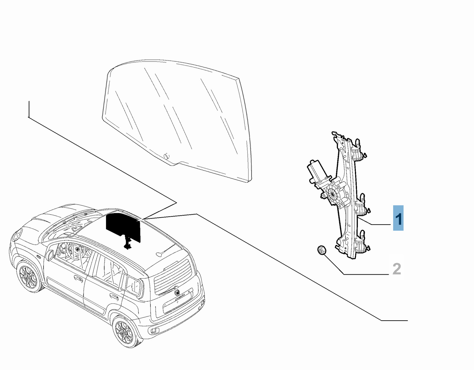 Alzacristallo anteriore destro completo di 6 rivetti per Fiat e Fiat Professional