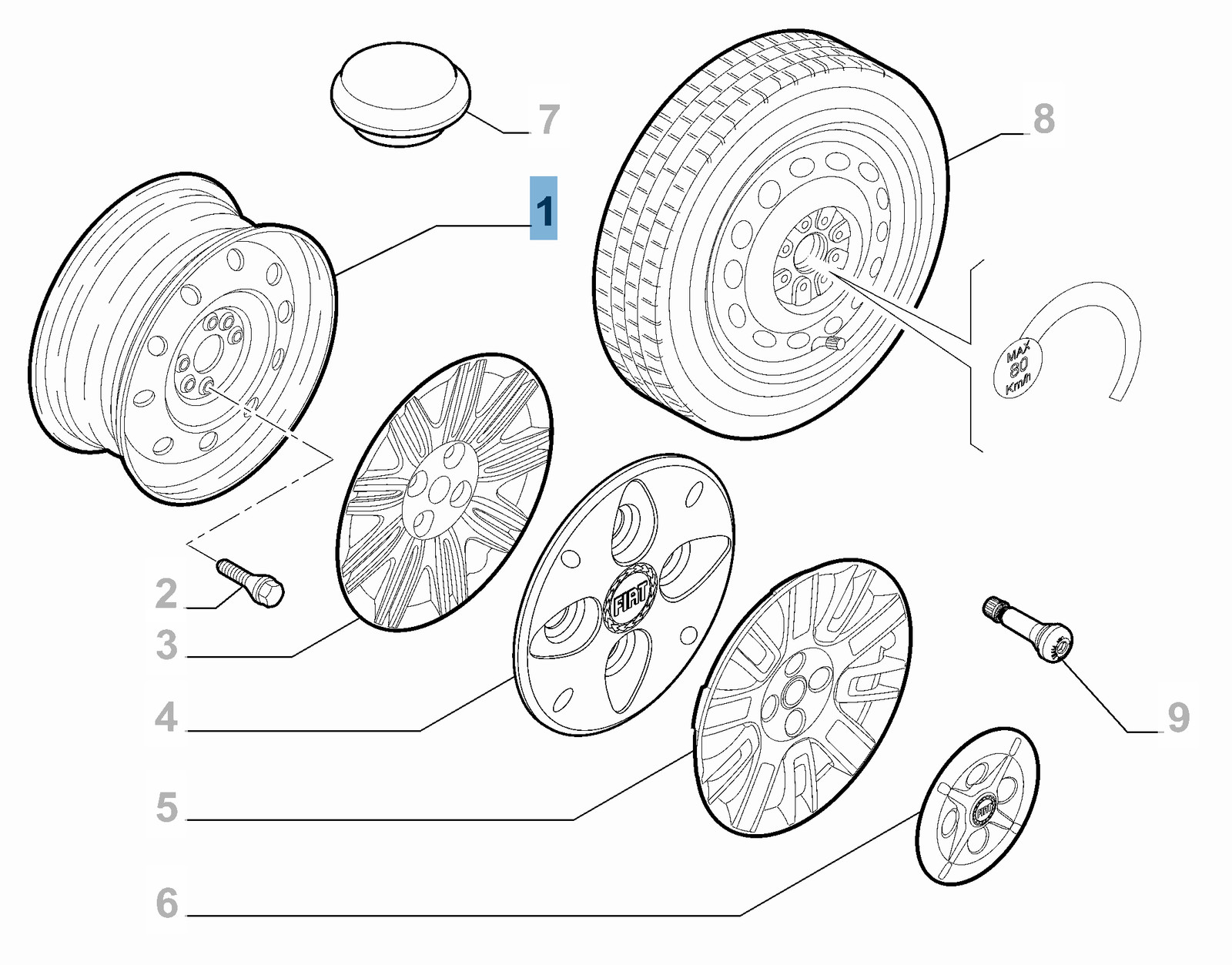 Cerchio in acciaio da 5.5J x 14” H2 per Fiat e Fiat Professional