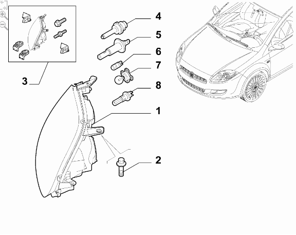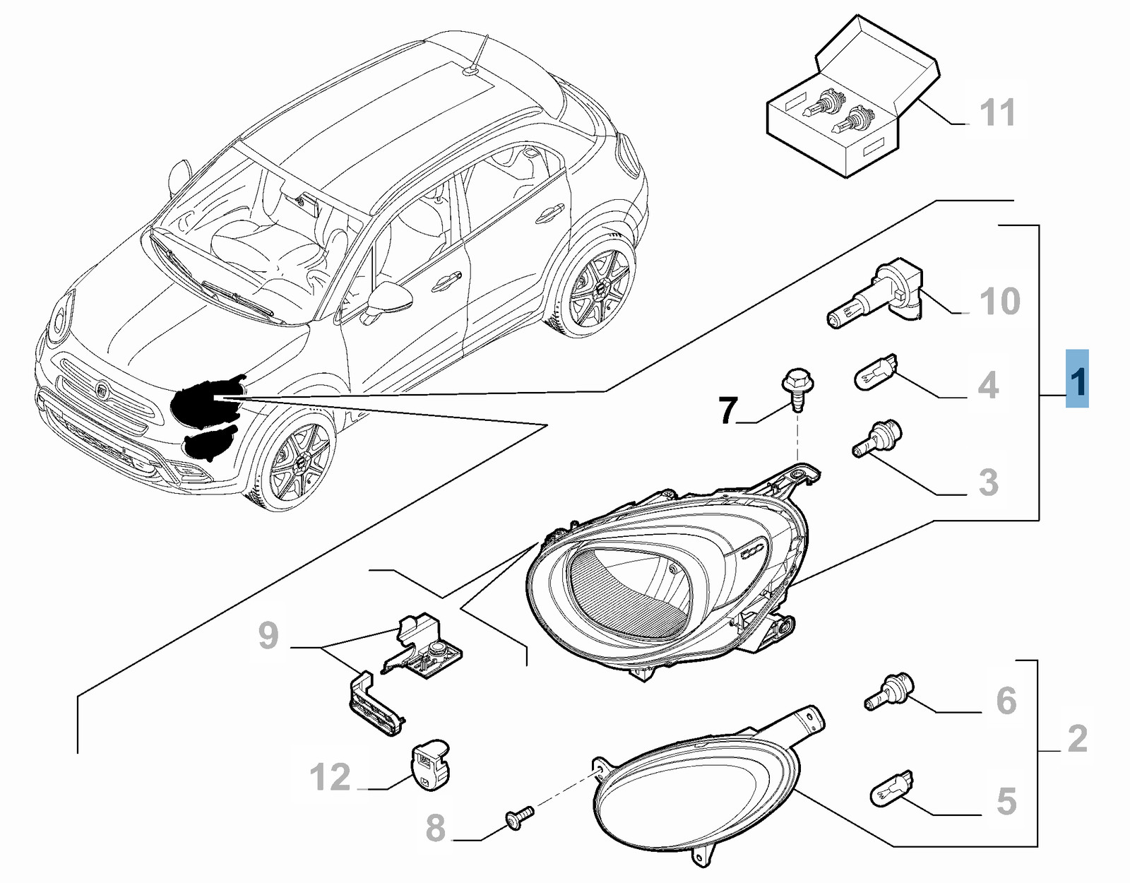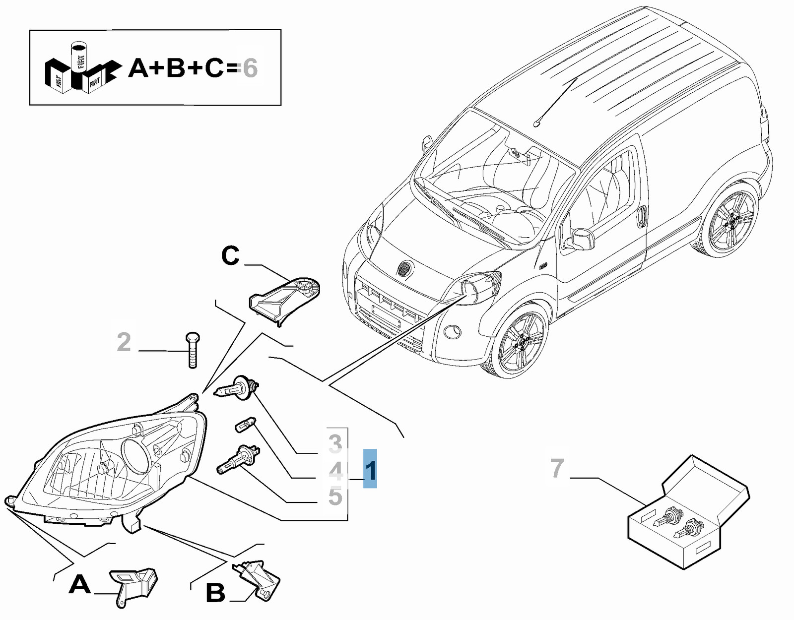 Faro anteriore destro completo di lampadine per Fiat e Fiat Professional