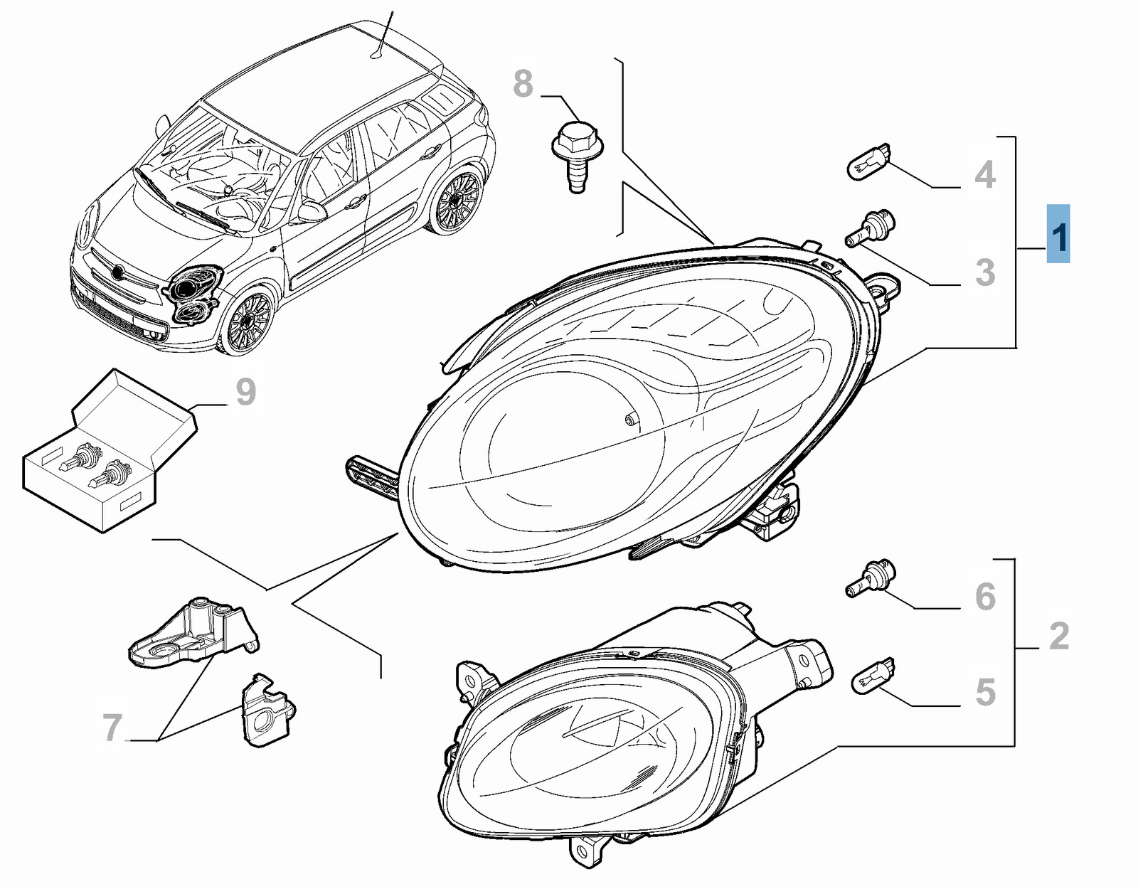 Faro anteriore superiore sinistro per Fiat e Fiat Professional