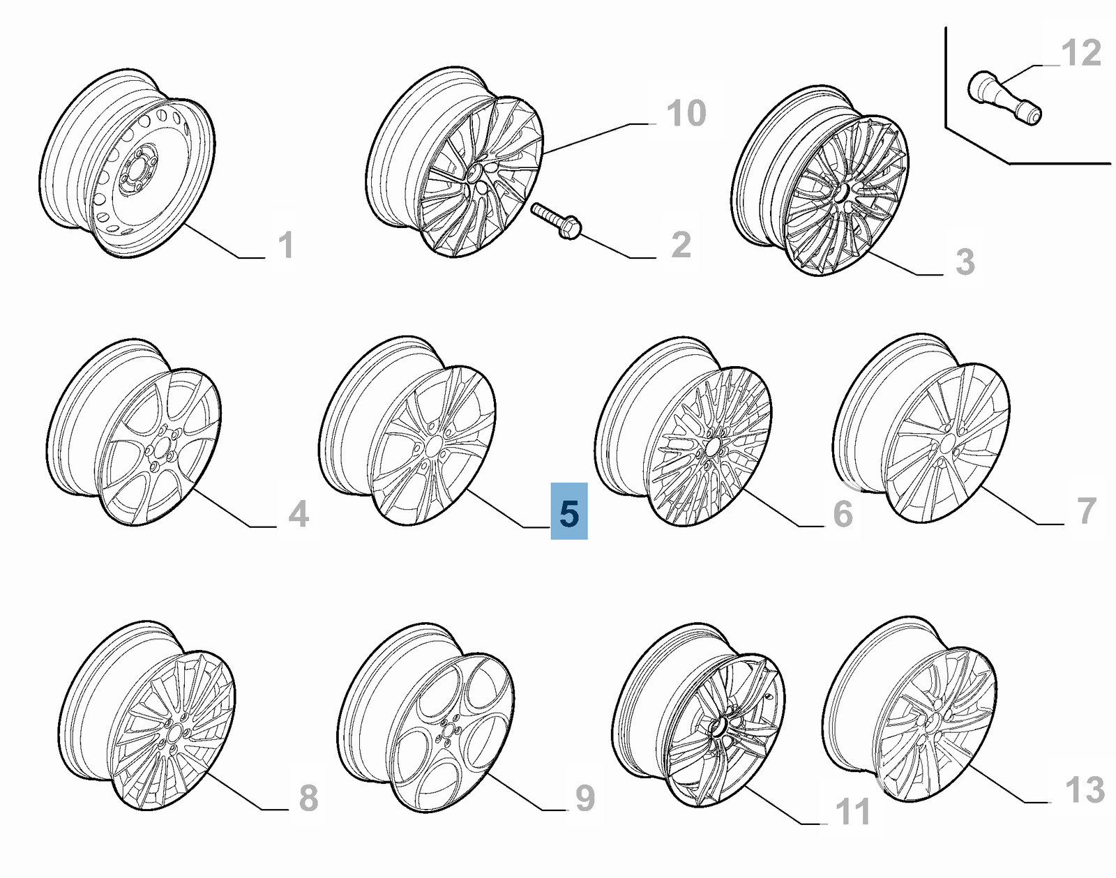 Spedizione rapidaCerchio in lega 6.5J x 16” per Fiat 500